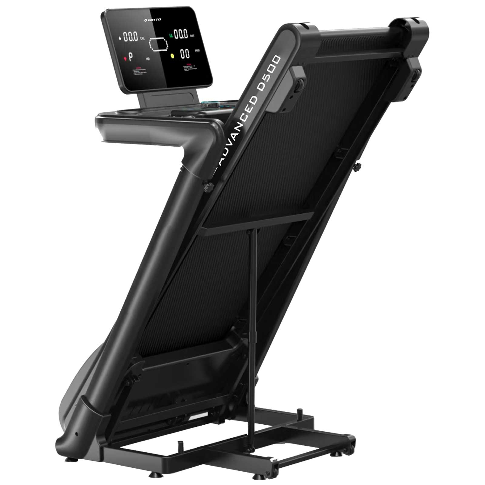 Modelul este 95% asamblat și dispune de un sistem de pliere pe cilindru cu depliere automată asistată hidraulic, ceea ce face utilizarea și depozitarea extrem de ușoare. Este echipat cu roți de transport pentru mutare rapidă, sistem de amortizare a șocurilor pentru protejarea articulațiilor și rezervor pentru lubrifiere, care ajută la întreținerea optimă a benzii. Cu o greutate netă de 65 kg, Lotto Advanced D500 oferă stabilitate, durabilitate și performanță ridicată pentru antrenamente eficiente acasă.